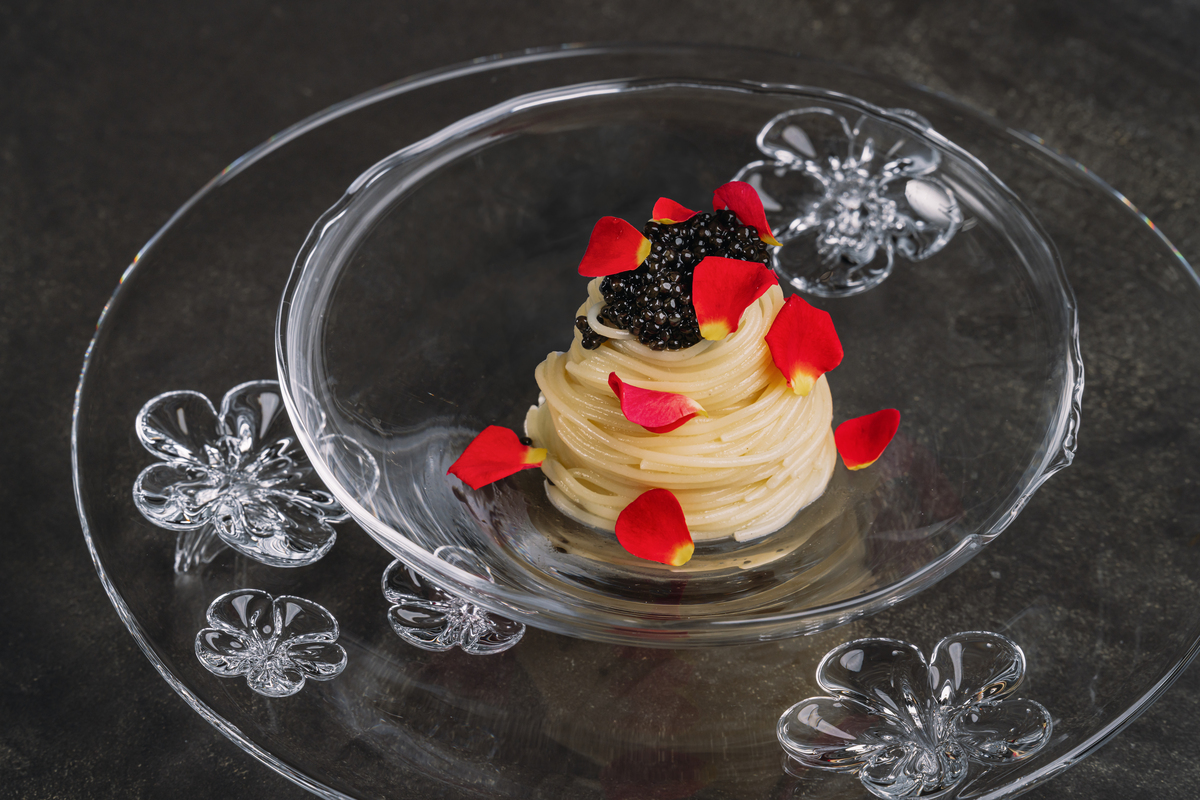 A lone chef guides each dish with instinct and memory—fresh Torta Fritta, caviar-topped chilled Capellini, and perfectly fired Manyo Beef from Tottori.