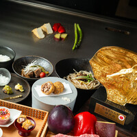 - 四季の移ろいを愉しむことができる、A5ランクの神戸牛を使った特別な鉄板焼き割烹コース。 最高級神戸牛の豊かな旨味と、四季折々の旬の食材を絶妙に組み合わせました。 また、厳選された食器にもこだわり、料理の美しさをさらに引き立てます。 美しい盛り付けと共に、一皿一皿をご堪能下さい。