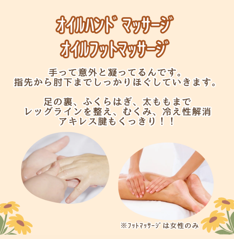 オイルハンドマッサージ・オイルフットマッサージ