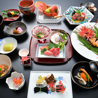 旬の味覚×豪華厳選食材を使用した《総料理長お任せ会席》 季節の会席コースとなりますので、名物の水たきをご希望の場合は、一品水たきの追加(3300円)をご注文時にお申し付けくださいませ。
