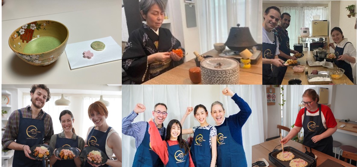 四季折々の食材を使った家庭料理(すき焼き、天ぷら)や大阪ソールフード(お好み焼き、たこ焼き)そして人気の茶の湯体験が体験できます。