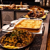 - 2026日4月04日(土)SATURDAY, 4th April 18:00PM~21:00PM(L.O 21:00) 特別ディナーパーティーへご招待いたします。 前菜盛り合わせ、羊丸ごと一頭の丸焼き、食欲をそそるマハシ、 風味豊かなグリルチキンの詰め物、グーラッシュミートパイにデザート付きのパーティをご堪能ください。 美味しい料理に加え、特別なベリーダンスショーもご用意しております。