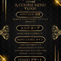 《予約必須》【¥5,000 A-コース】◆ビリヤニシシタウクやコシャリなど4品から選べる一品、スープ、サラダ、フムス、デザートなどが楽しめる♪《プラス料金で飲み放題のプラン、滞在時間変更可》
