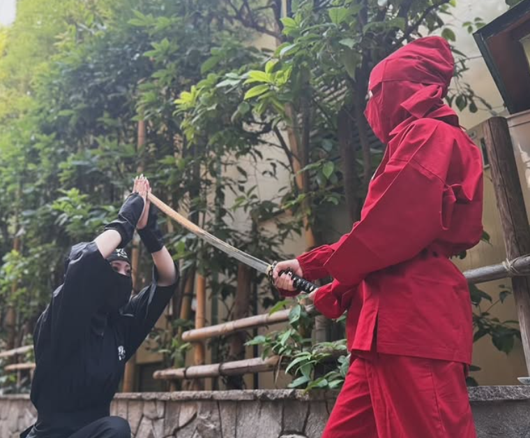 本格的な手裏剣ダーツや真剣白刃取り、抹茶立て体験など、